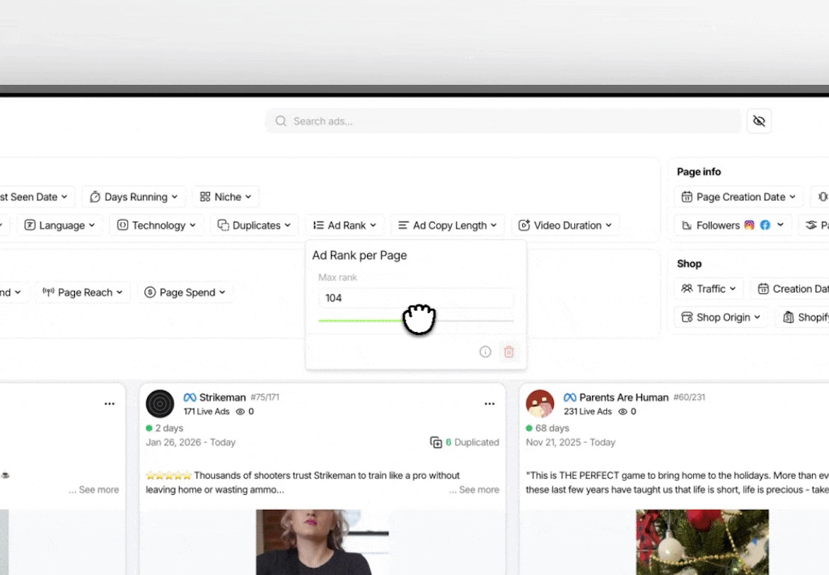 You can now filter to see ads exclusively from Shopify-powered stores. This is perfect for: