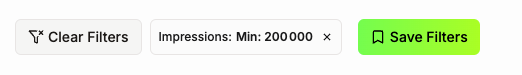 Create multiple saved filter sets for different research needs - whether you're tracking competitor campaigns, monitoring specific date ranges, or analyzing high-impression ads. Switch between your saved filters instantly to maintain your research momentum.